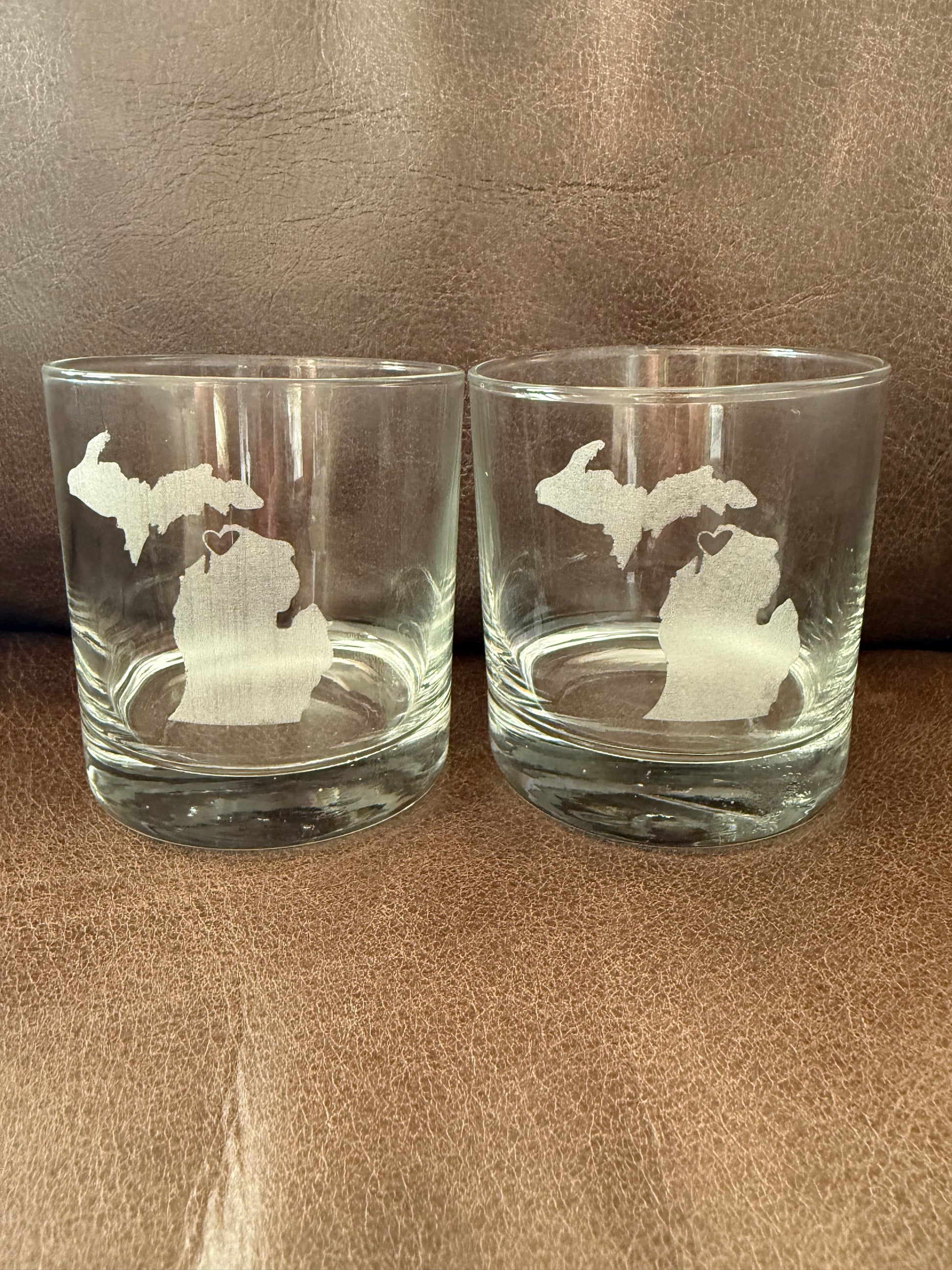 Be the life of the party with this custom Michigan glassware! These will look great on your bar, at your next party, or order for a special "one of a kind" gift!
